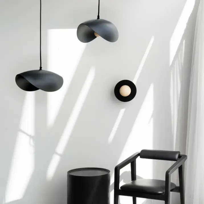 With it’s mat black finish also available in our full colour range, the Coquelicot comes in a variety of pendant, ceiling, and free-standing models.