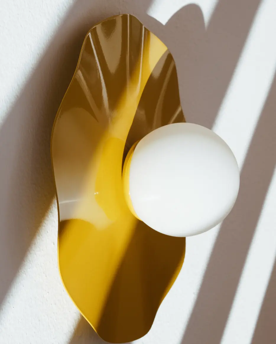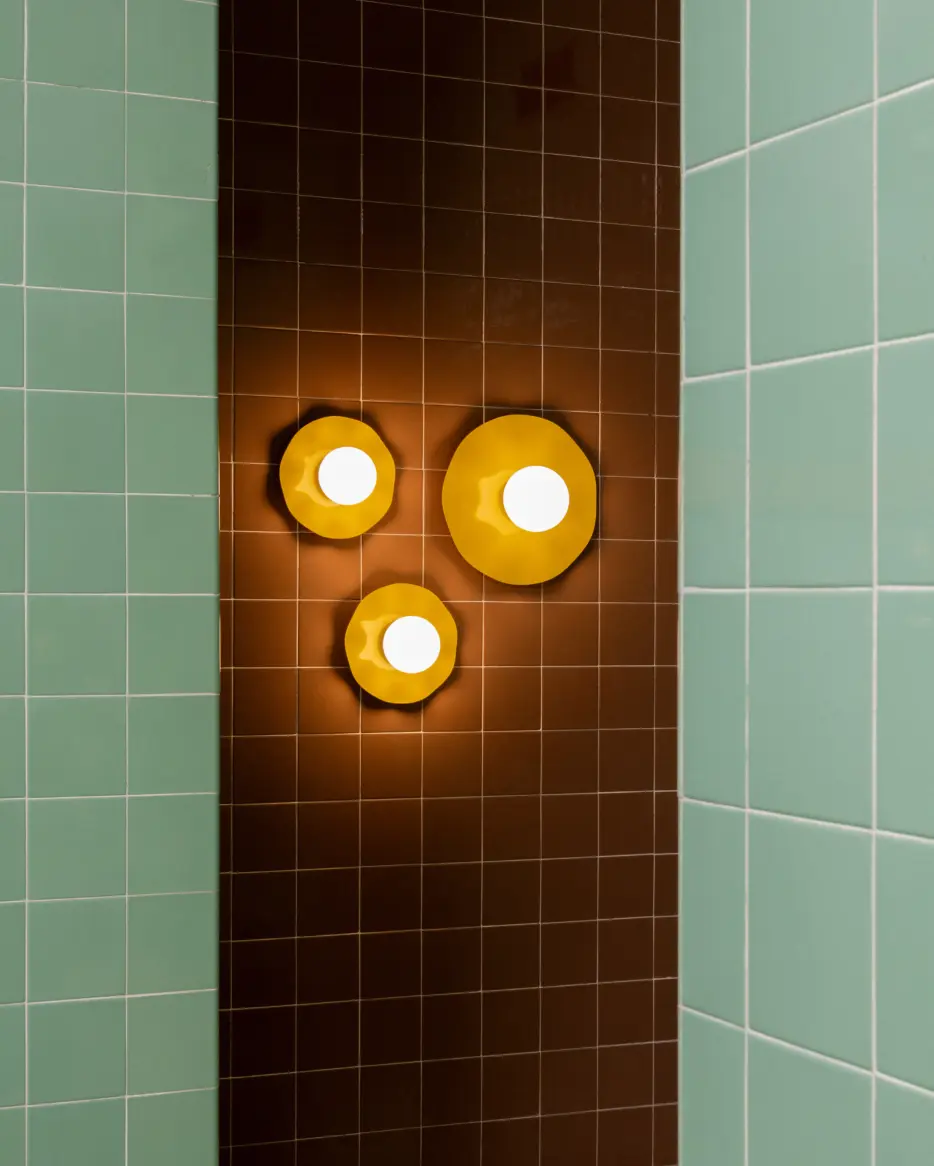 Suspension lights in bouquets of different colours and wall lights that can be arranged in a mosaic to create a tapestry effect.
