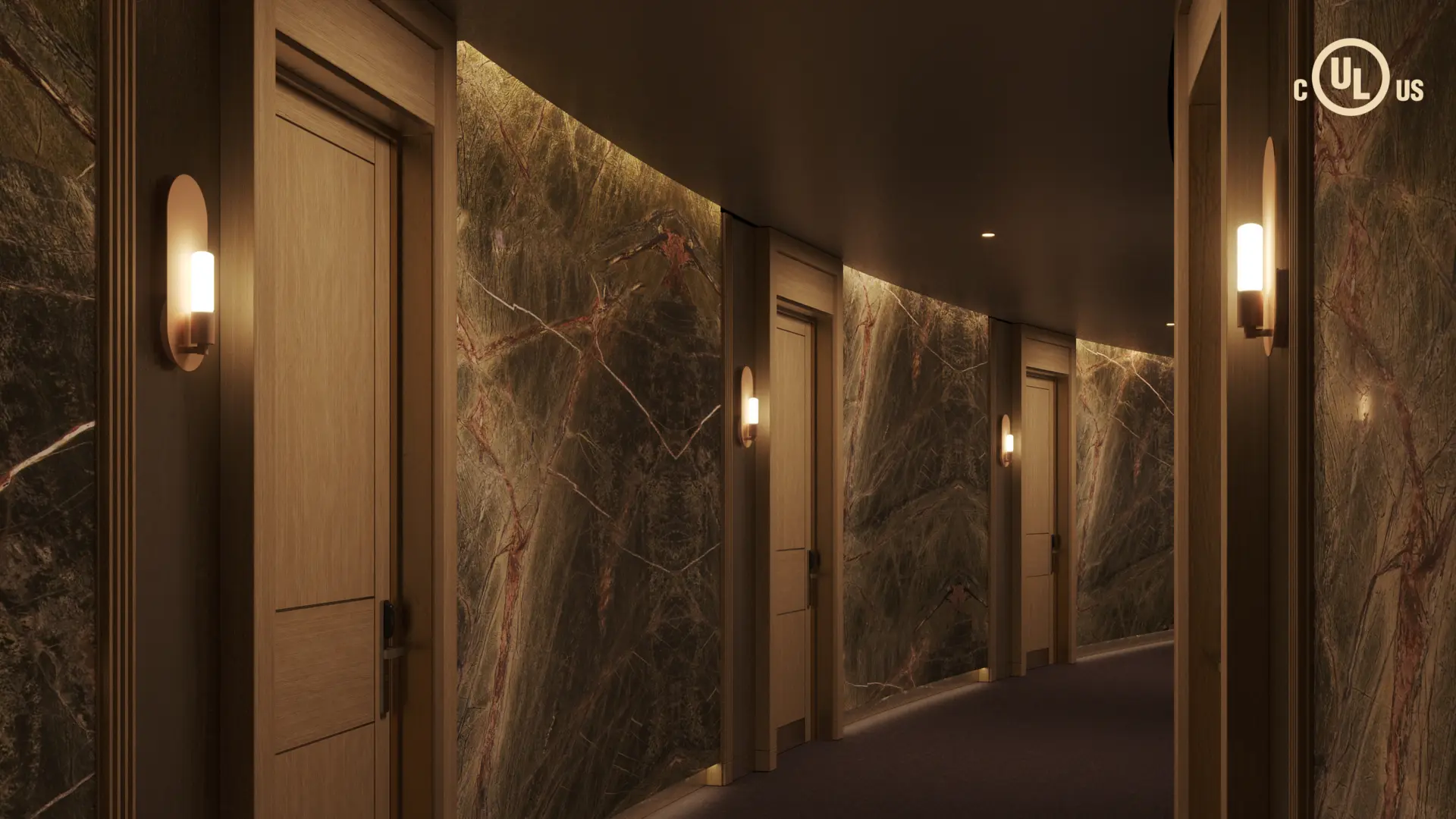 Sleek, space-saving wall lights designed for hotels and commercial spaces.