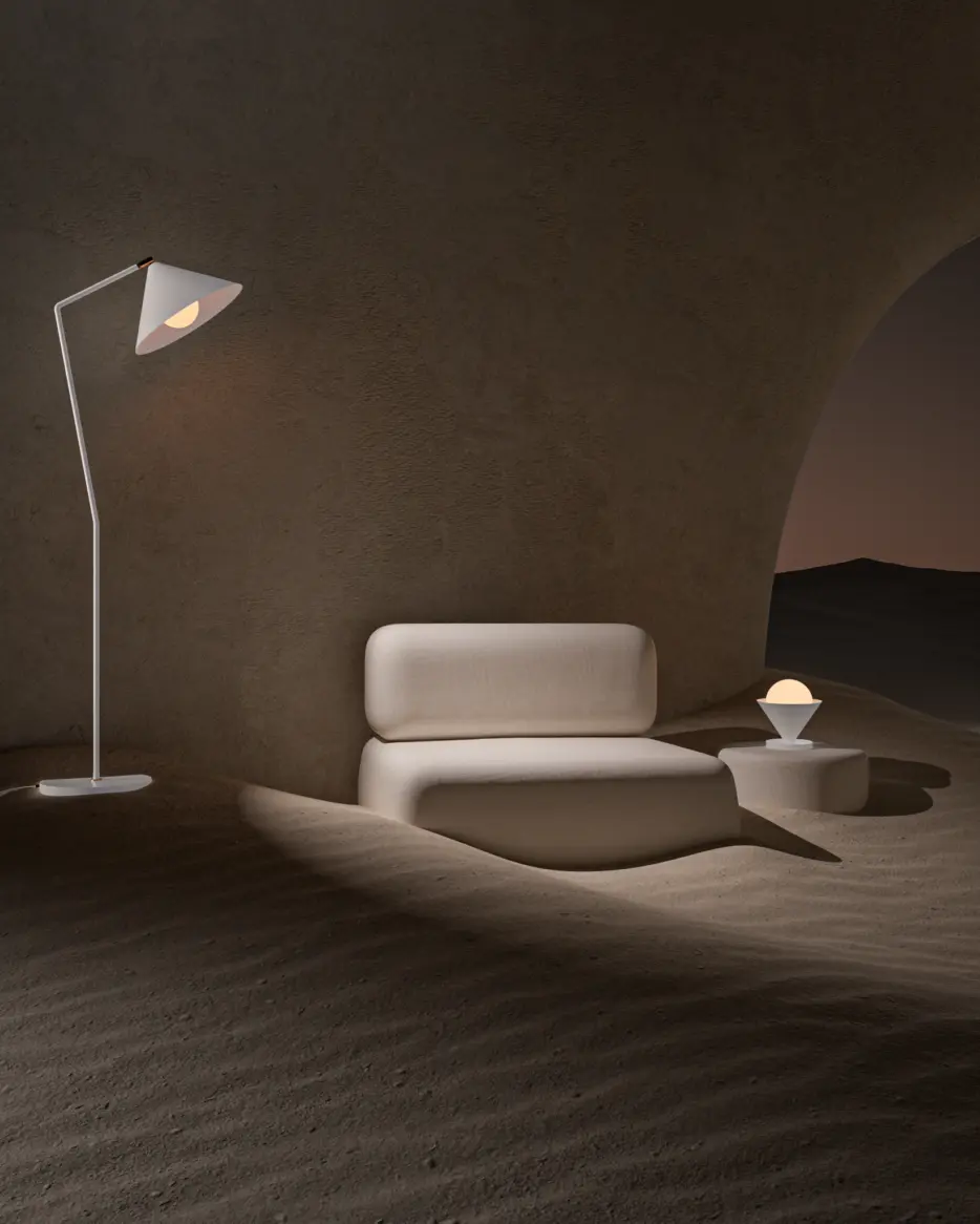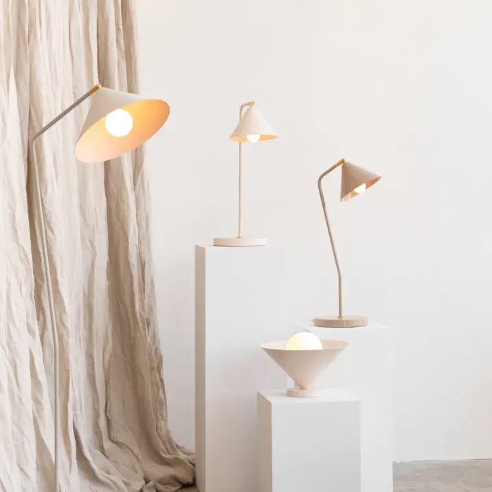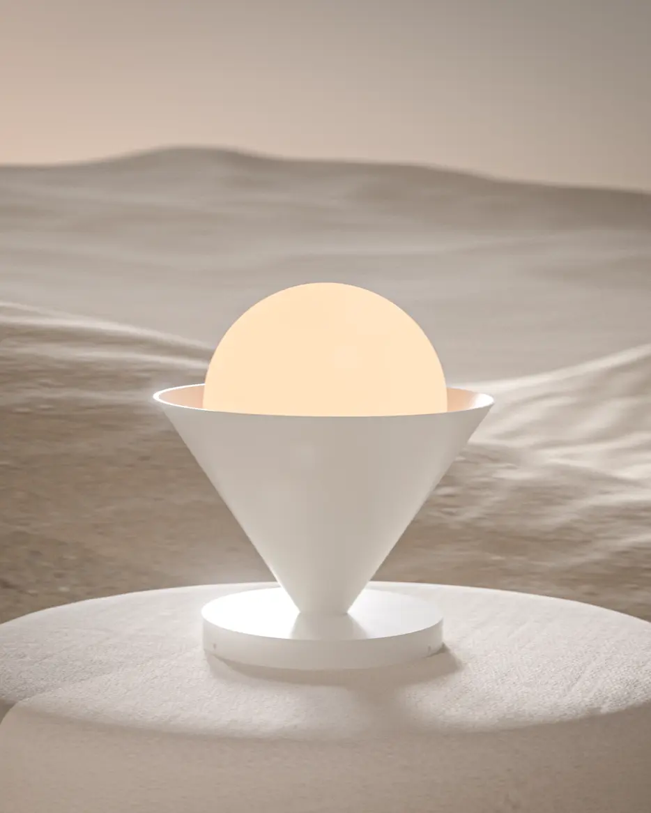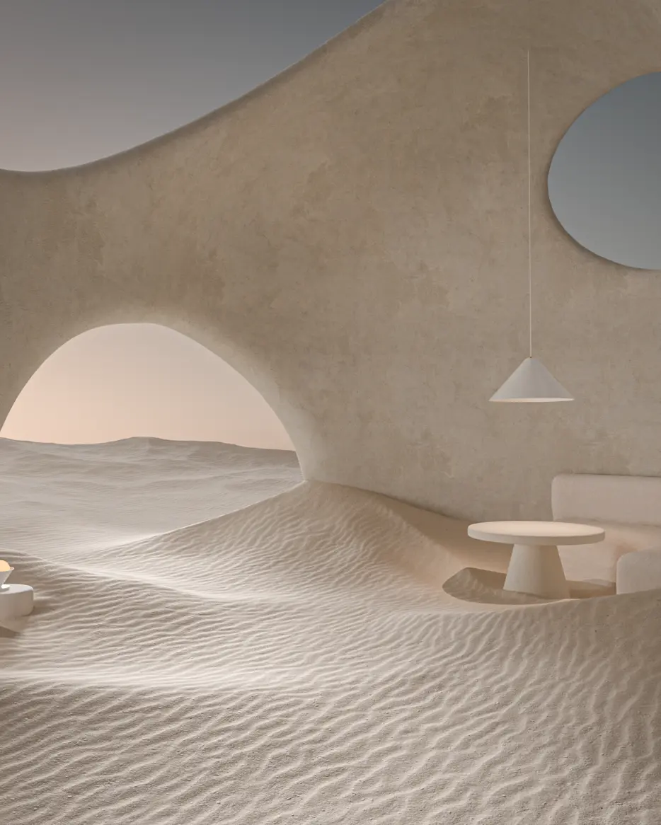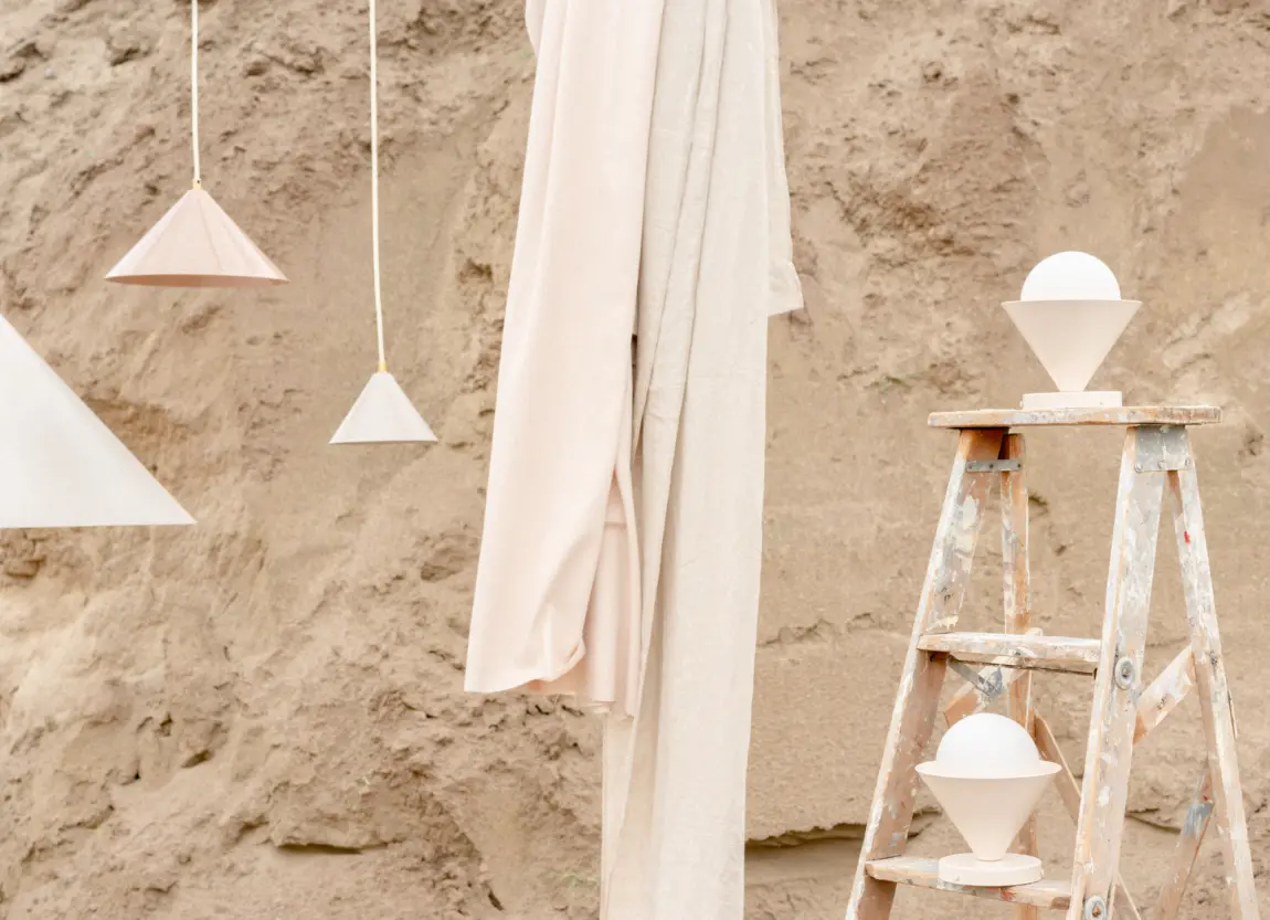 Greatly inspired by the beauty that emanates from sand dunes, we had the desire to bring the conical shape forward. It is presented here with our palette of soft colors, inspired by the desert environment which preserves the luminosity and recalls the textures of the sand.