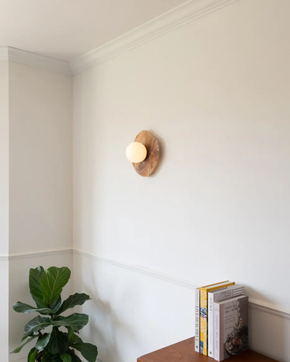 The NOPAL collection is distinguished by its asymmetrical shape that gives it an avant-garde look. The glass ball that diffuses a soft and pleasant light, creating a warm atmosphere in your home. As a wall lamp, it can become a real artistic piece to set the mood.