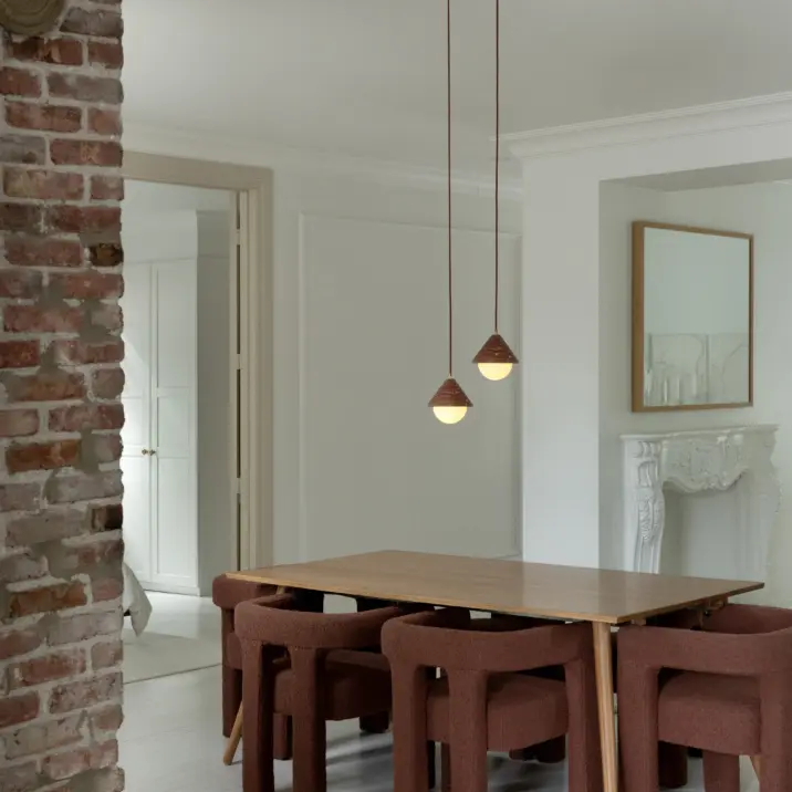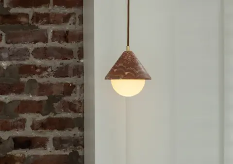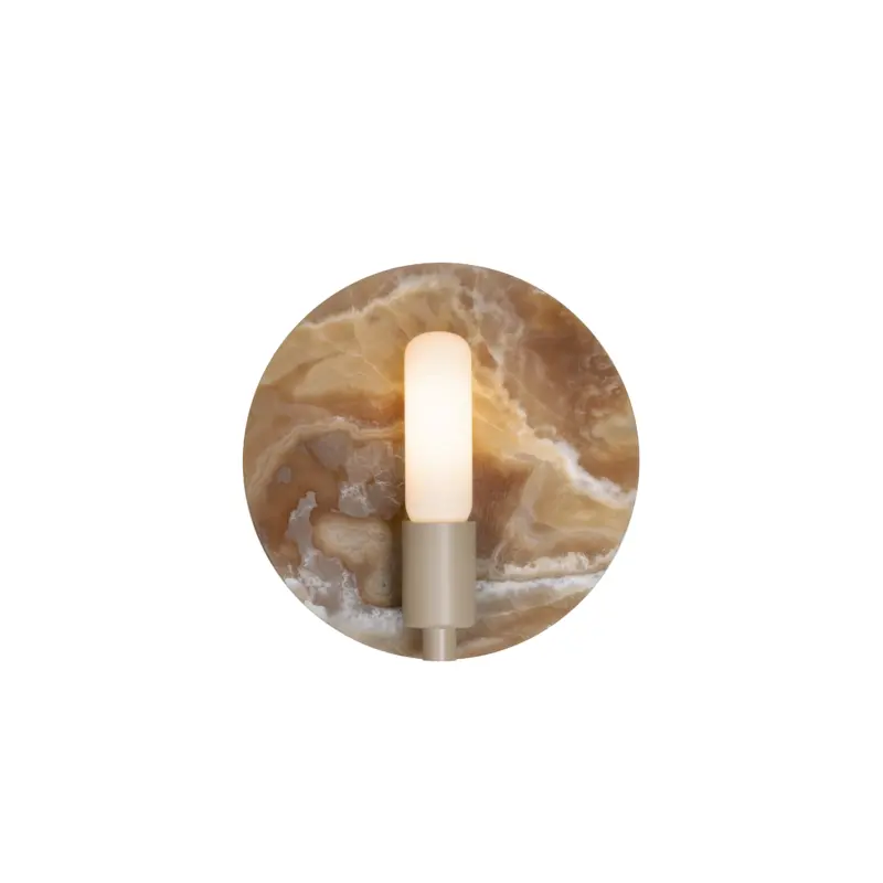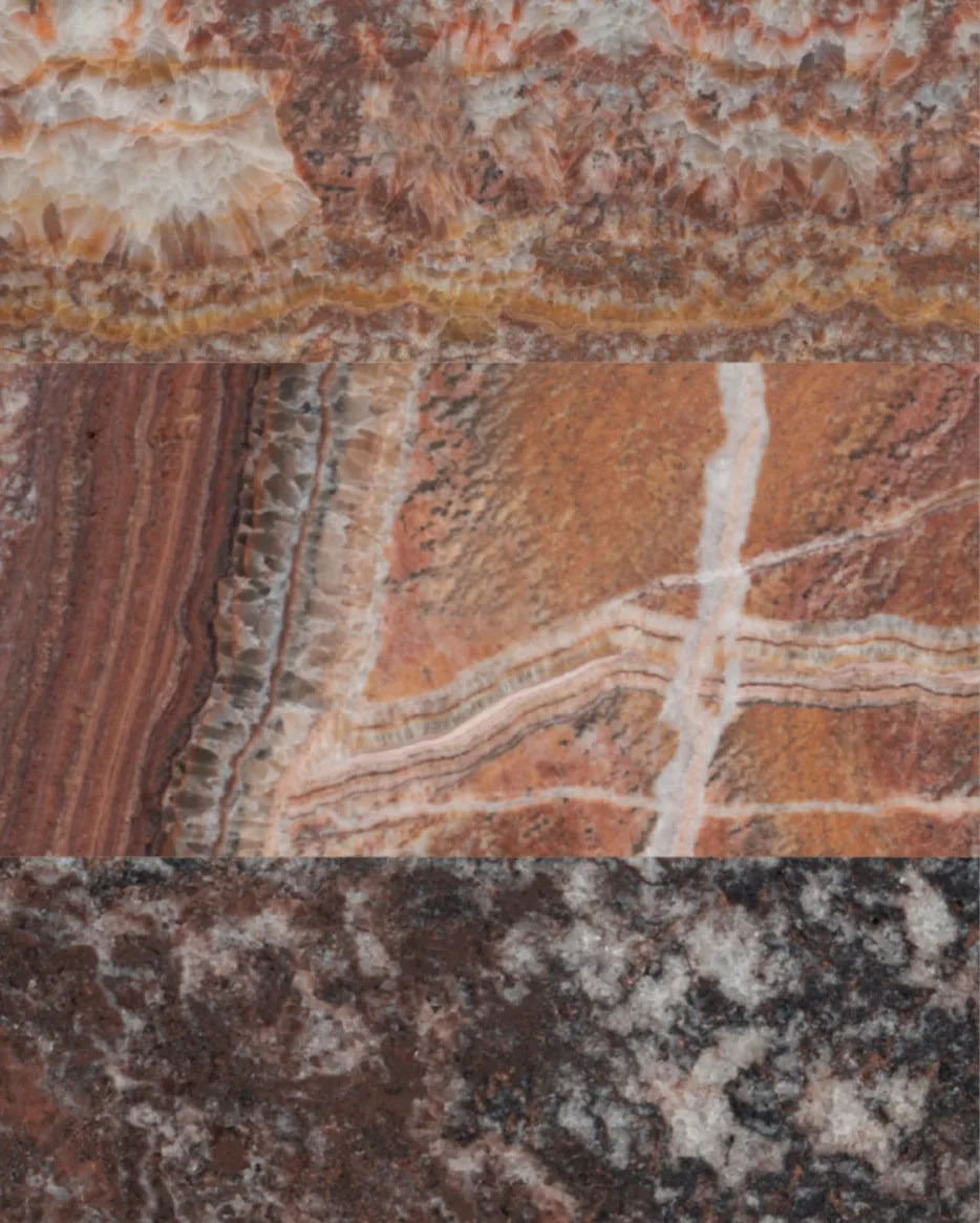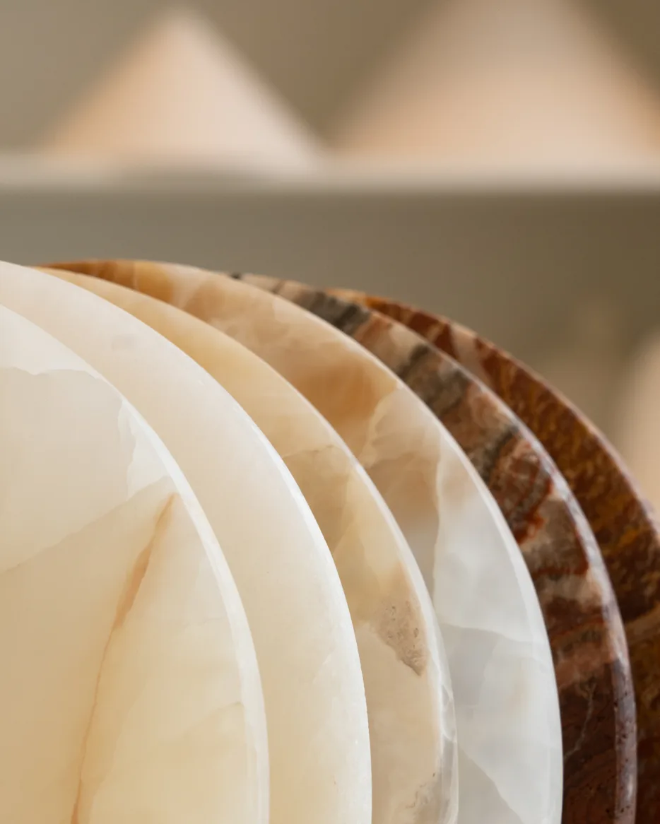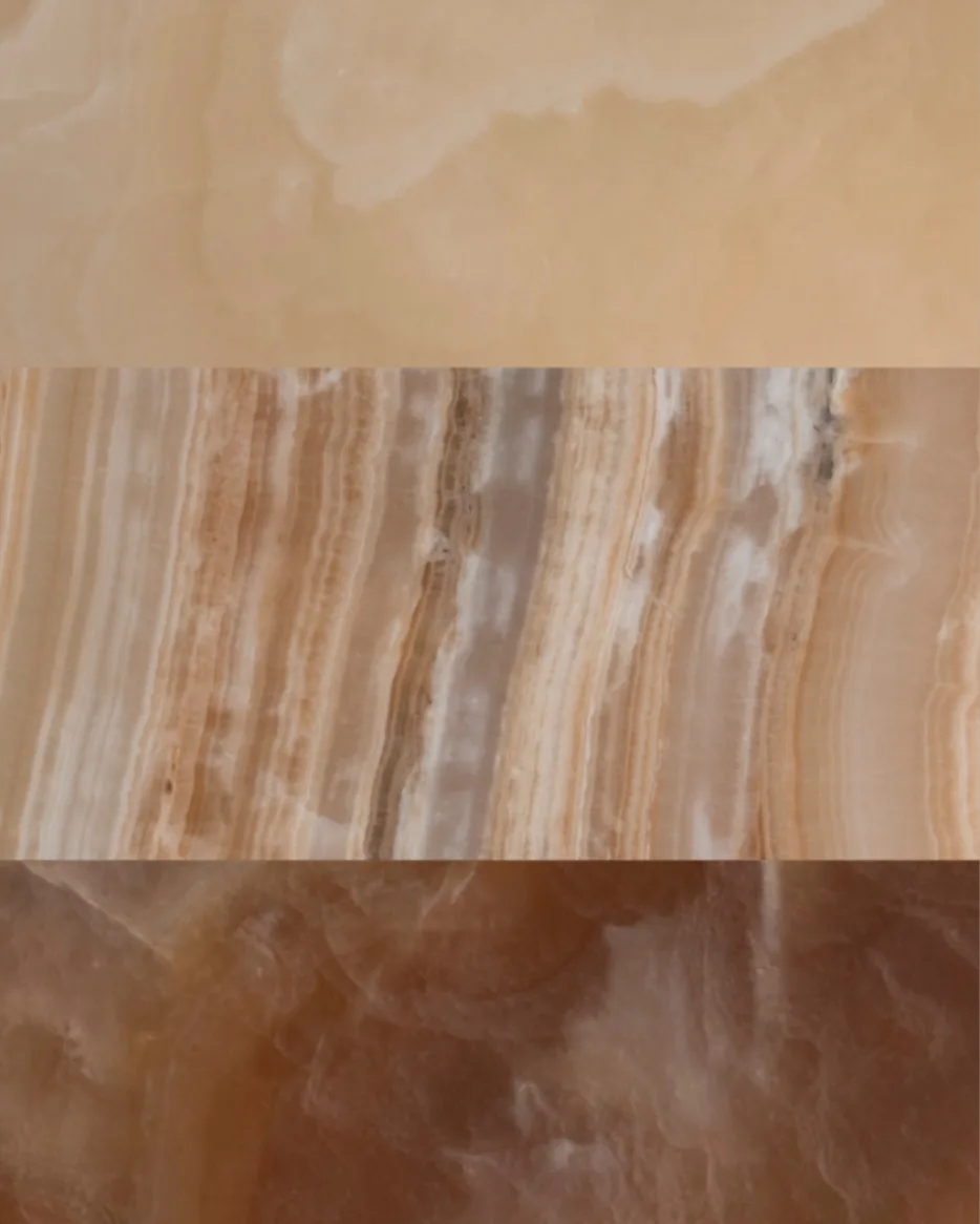 The onyx stone lighting collection is available in three distinct shades — cream, amber, and rust — each revealing a unique character and organic beauty.