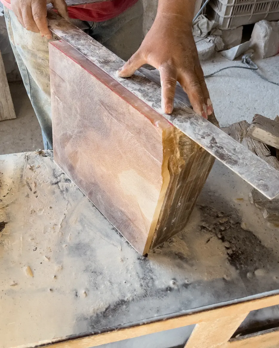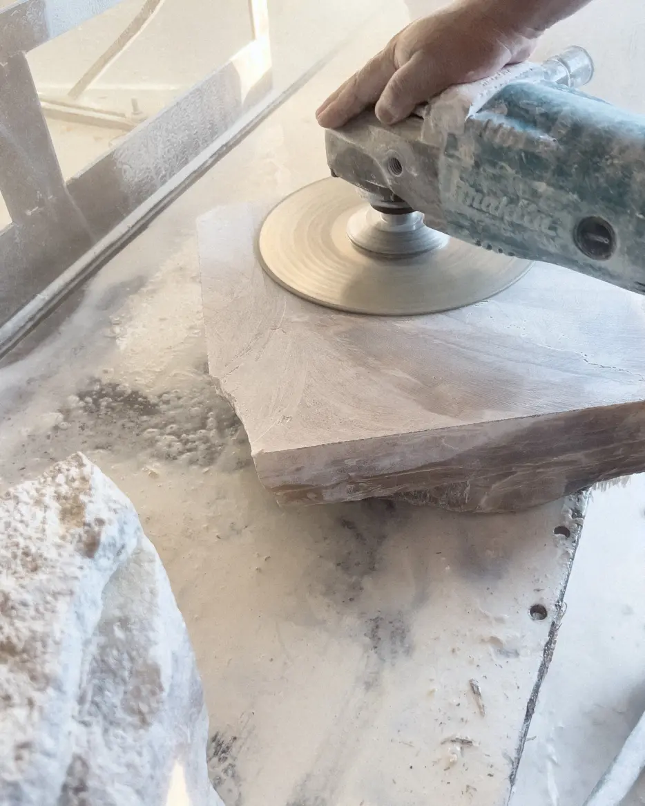 Carving: After the initial cut, the stone is carved with diamond grinders to create the desired shape and texture. We have decided to offer our Nopal, Krema, Arch and NOS models in Onyx stone.