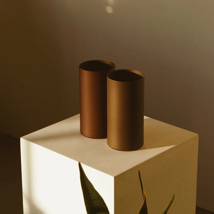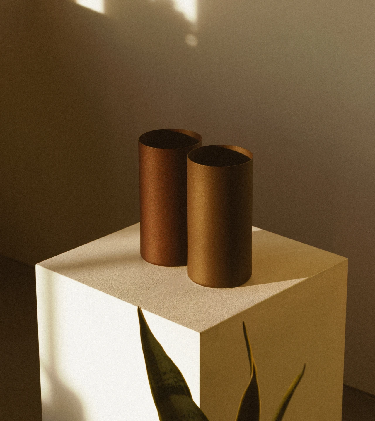 The Matte Corten, textured and inspired by oxidized metal, features a deep brown with reddish-orange undertones, while the Matte Chocolate, a neutral brown, reveals subtle greenish and golden highlights that are easy to pair.