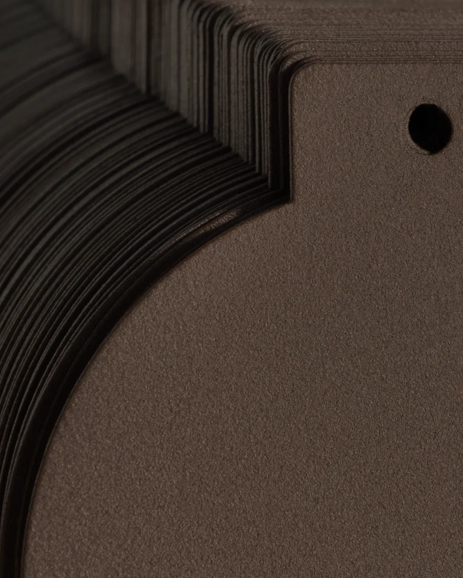 Our Matte Corten is a textured finish that replicates the look of oxidized metal, with a timeless appearance reminiscent of genuine Corten steel. Its deep brown tone is subtly nuanced with red-orange undertones, revealing fine granules visible up close.