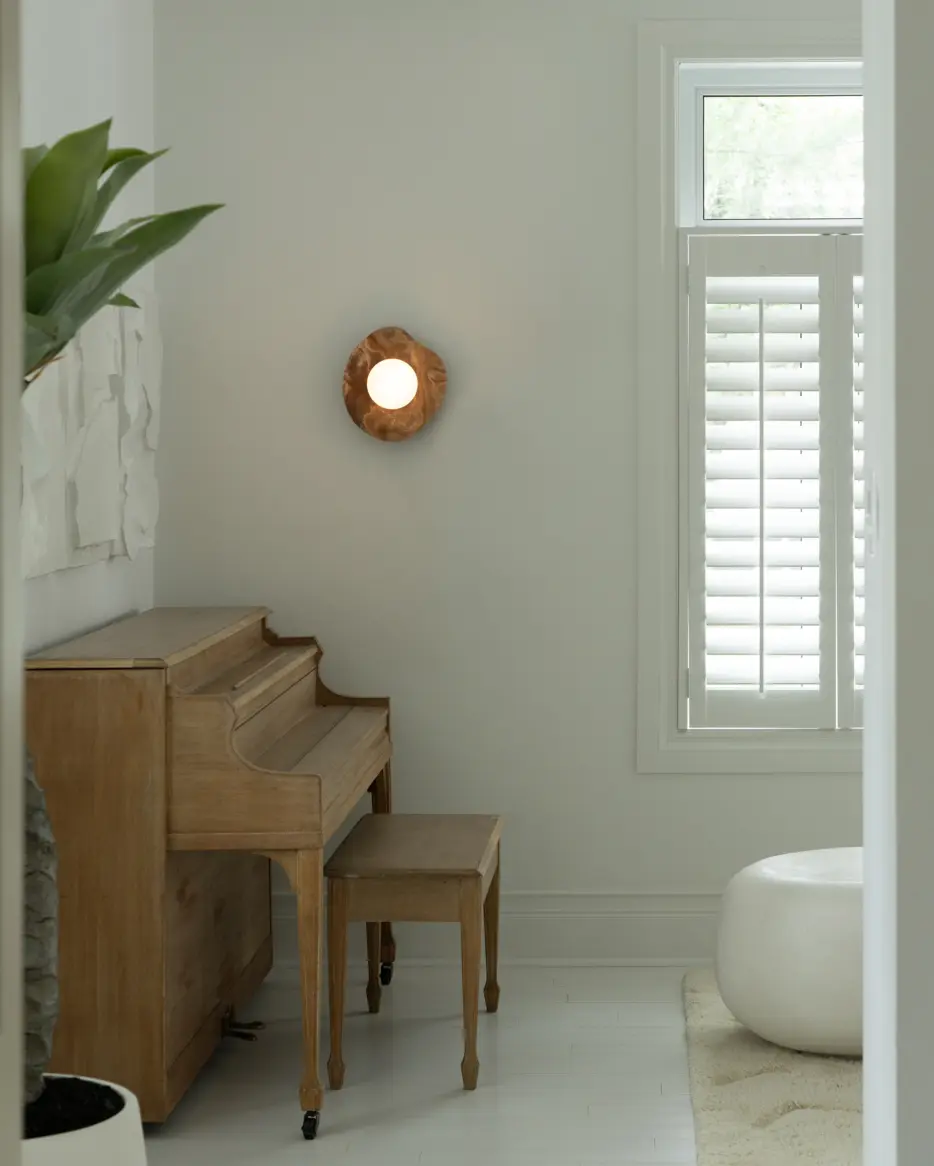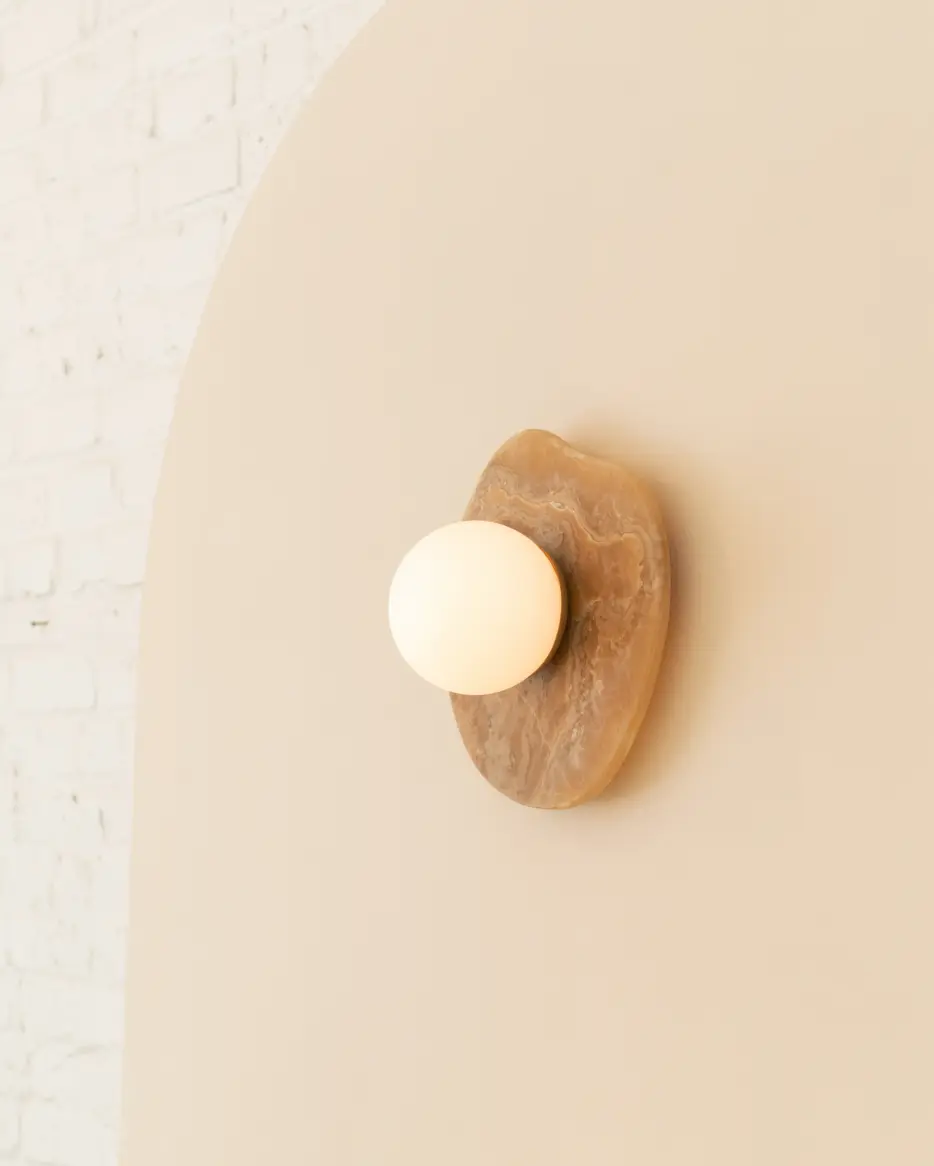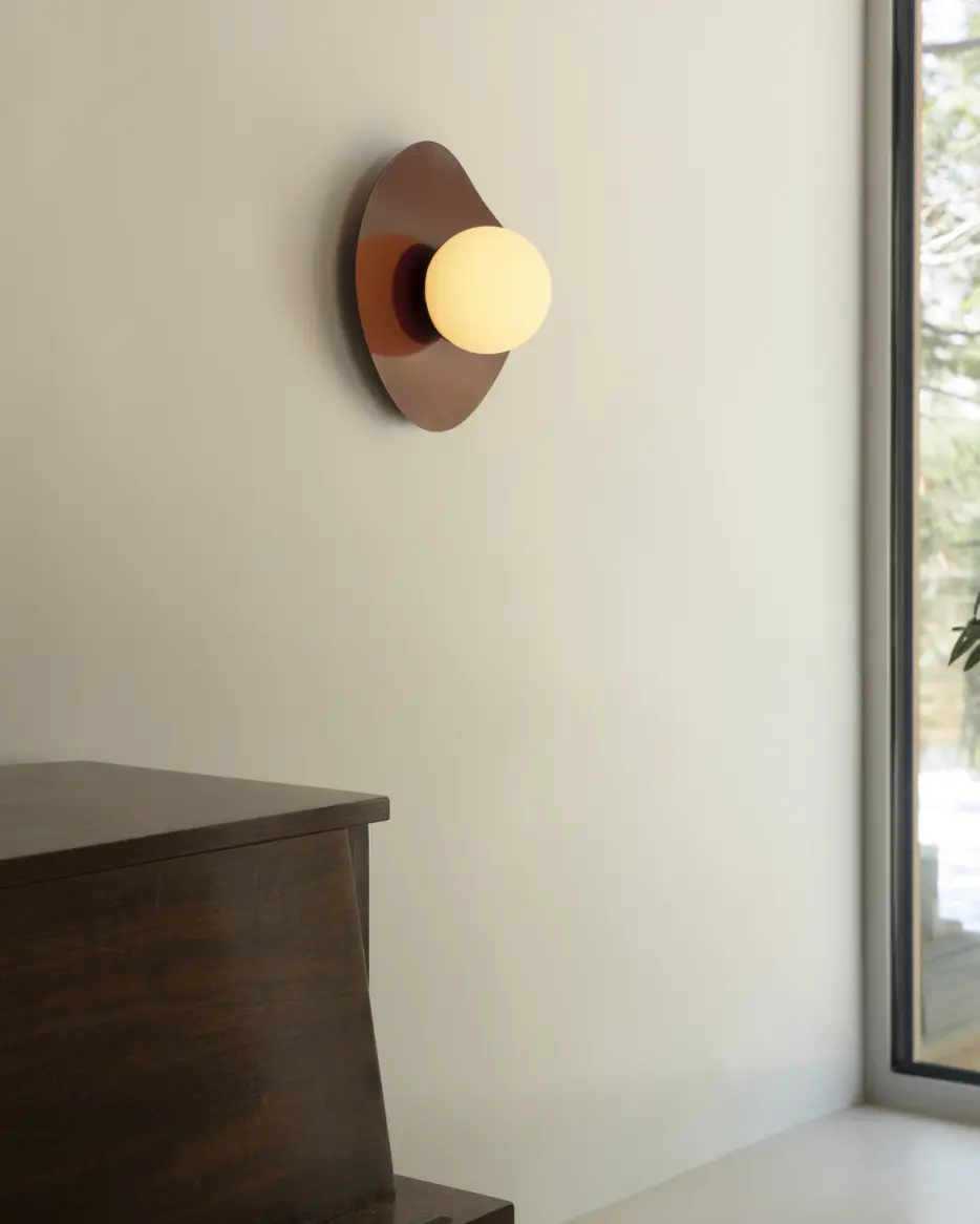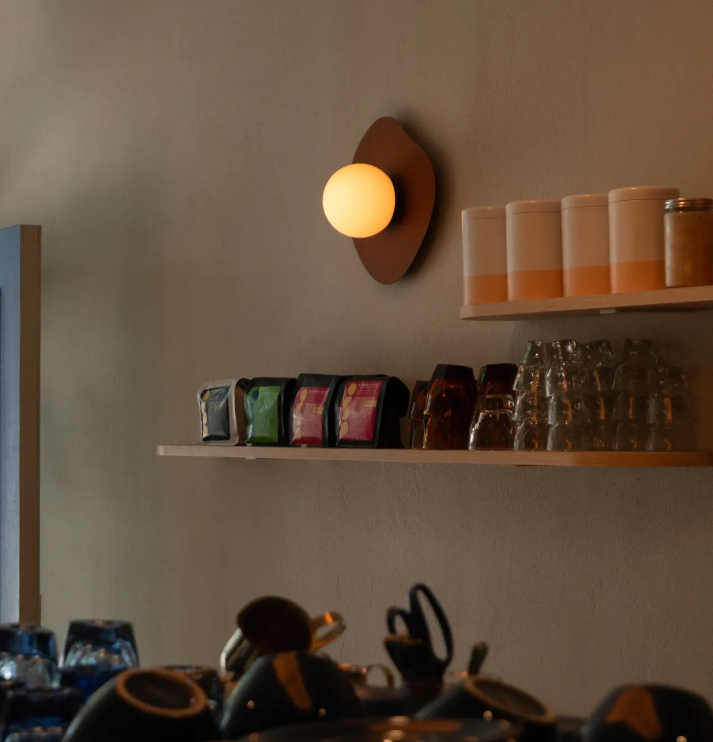 The Nopal collection stands out for its asymmetrical shape, giving it an avant-garde appearance. The glass globe that rests on it diffuses a soft and pleasant light, creating a warm atmosphere in your interior. As a wall sconce, it can become a true artistic piece to set the mood.