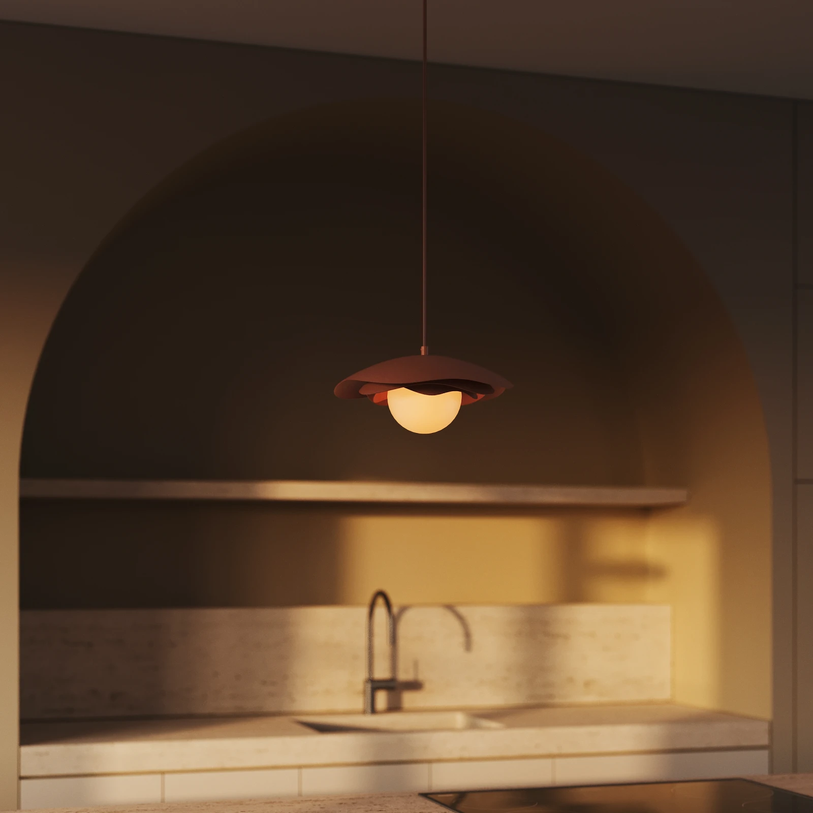 Pivoine expresses a soft, organic elegance through light. Each piece brings together the delicacy of petals and the strength of metal, creating a refined balance between lightness and structure.