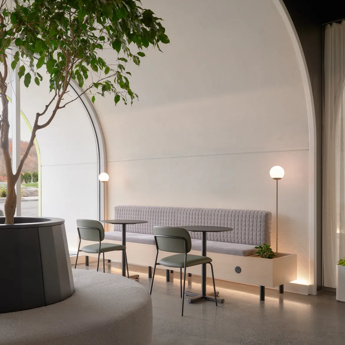 They represent the balance between contemporary design and organic softness. Inspired by the asymmetrical shape of the Nopal, they are reinvented through the fluid, curved lines of the Sopal, evoking lightness and simplicity. Their sculptural silhouette and integrated glass ball diffuse a natural, warm light, transforming any space into a welcoming place.