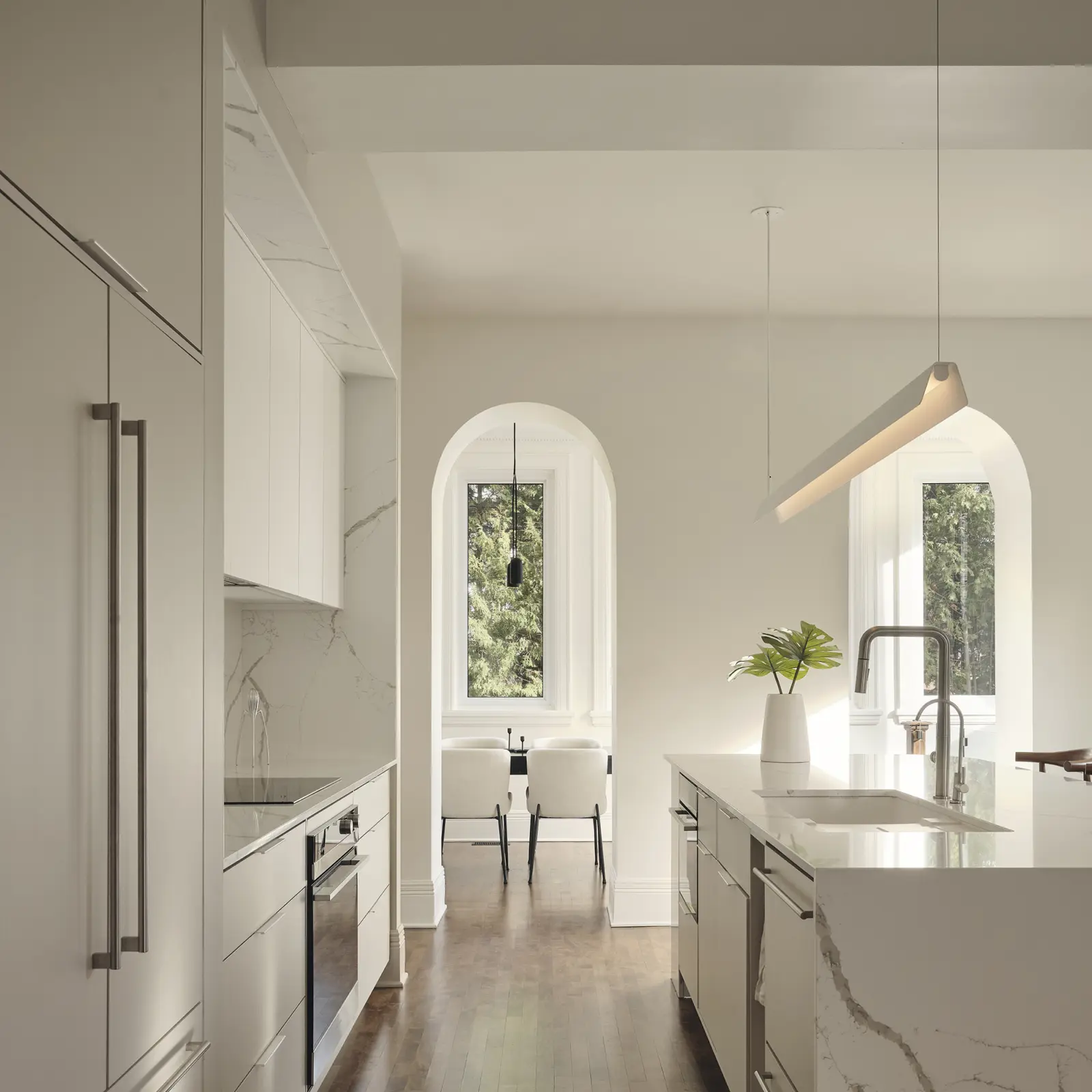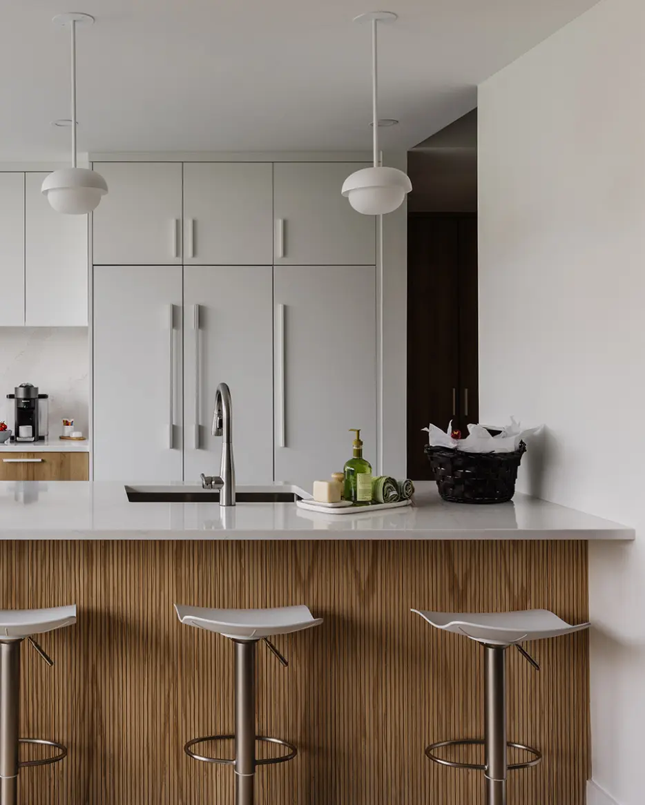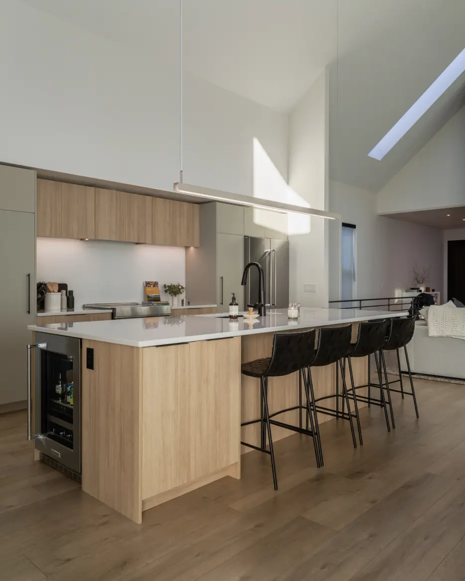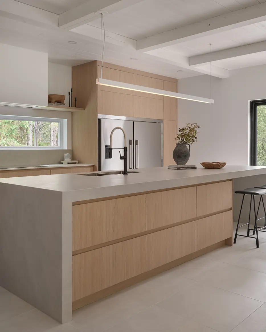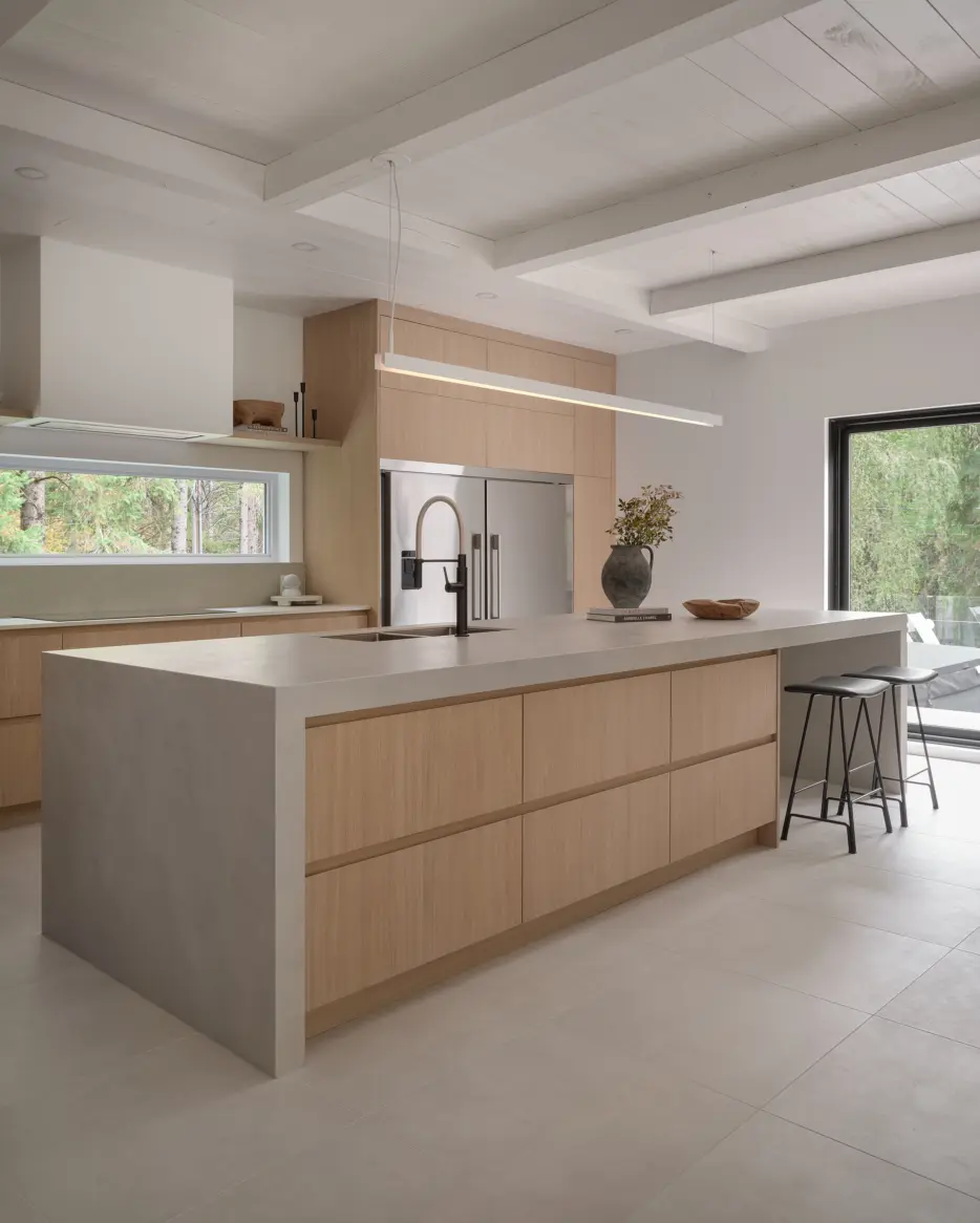 In a minimalist kitchen, lighting plays a central role: simple, clean shapes emphasize the space’s purity while adding a unique touch of character. These luminous pieces, both discreet and distinctive, bring warmth, elegance, and a refined atmosphere without weighing down the décor.
