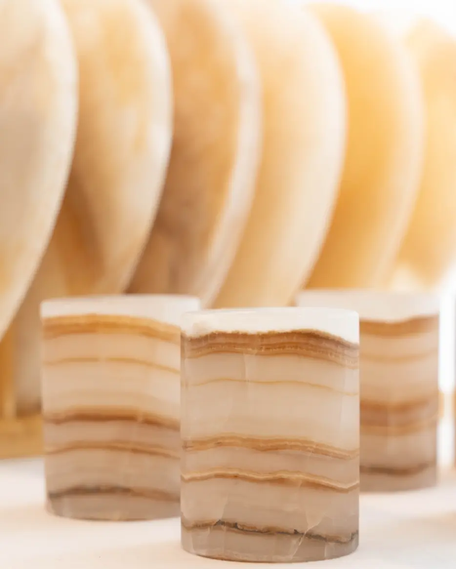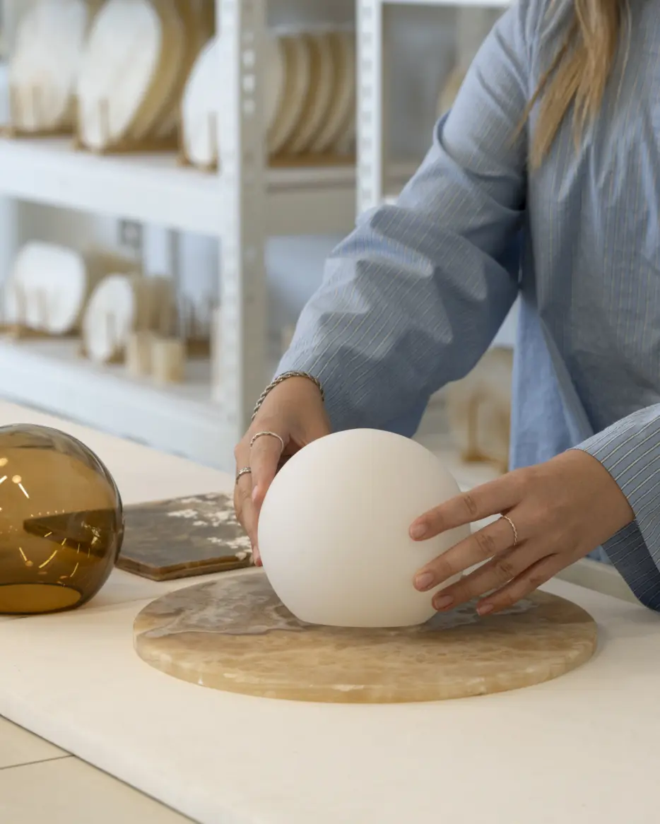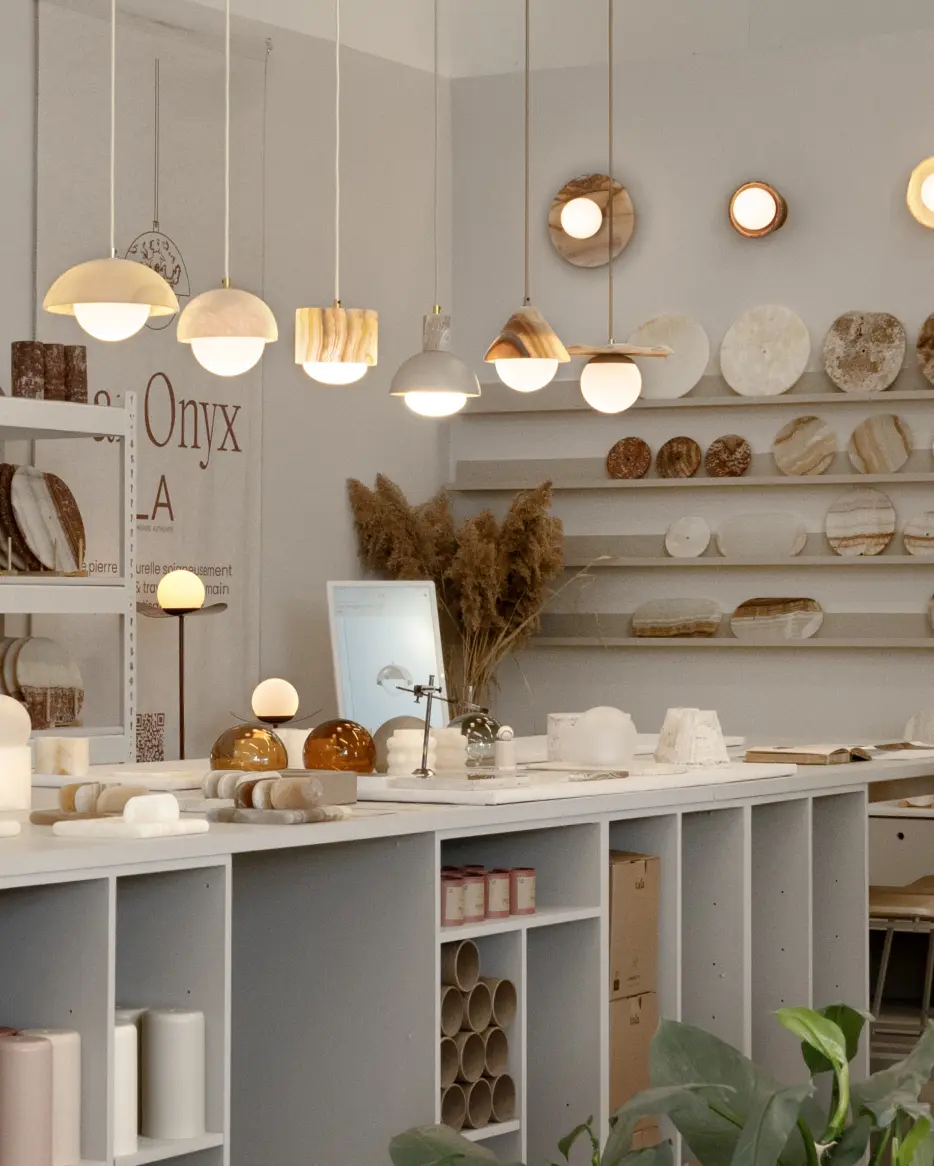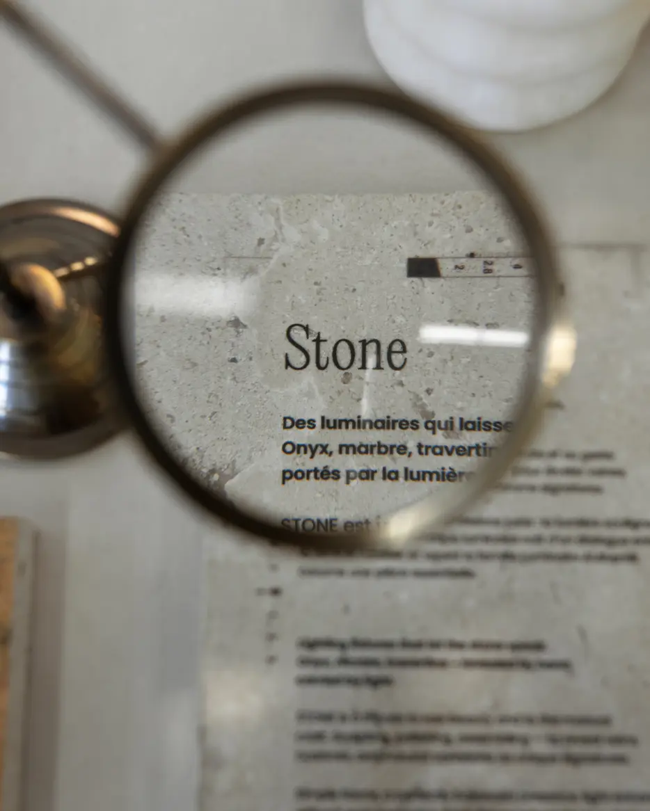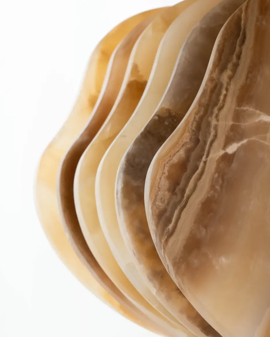 Book an appointmentThe STONE collection is a series of lighting pieces sculpted from natural stone, where light reveals the raw beauty of marble, onyx, and travertine.