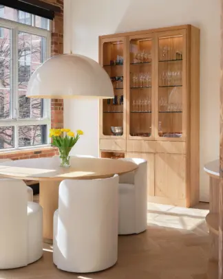 Catherine St-Laurent, connue en tant qu'actrice, se distingue entre autre par son sens de l'esthétisme et sa maîtrise de la mode et de la décoration. Elle a choisi des luminaires qui s’intègrent parfaitement à l’ambiance scandinave et minimaliste de sa maison, où la lumière et les couleurs s’équilibrent avec discrétion et élégance.