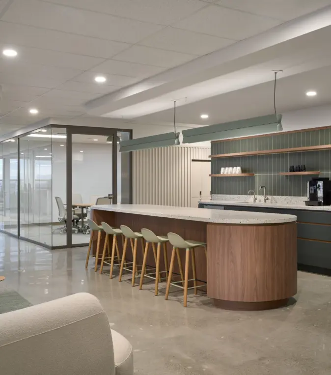 Consignaction, the Quebec association for the recycling of beverage containers (AQRCB), chose our lighting fixtures to help refresh the cafeteria of their head office. Centered around a soothing sage color palette, the lighting adds a modern and harmonious touch to the space, creating a welcoming atmosphere for daily breaks and informal conversations.