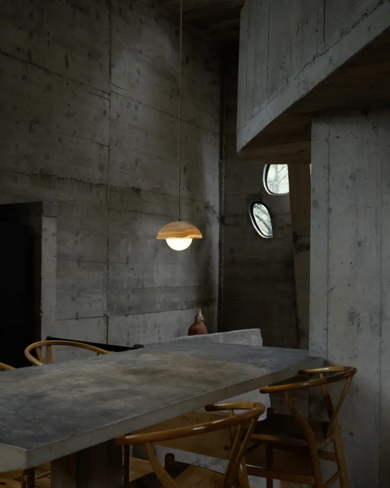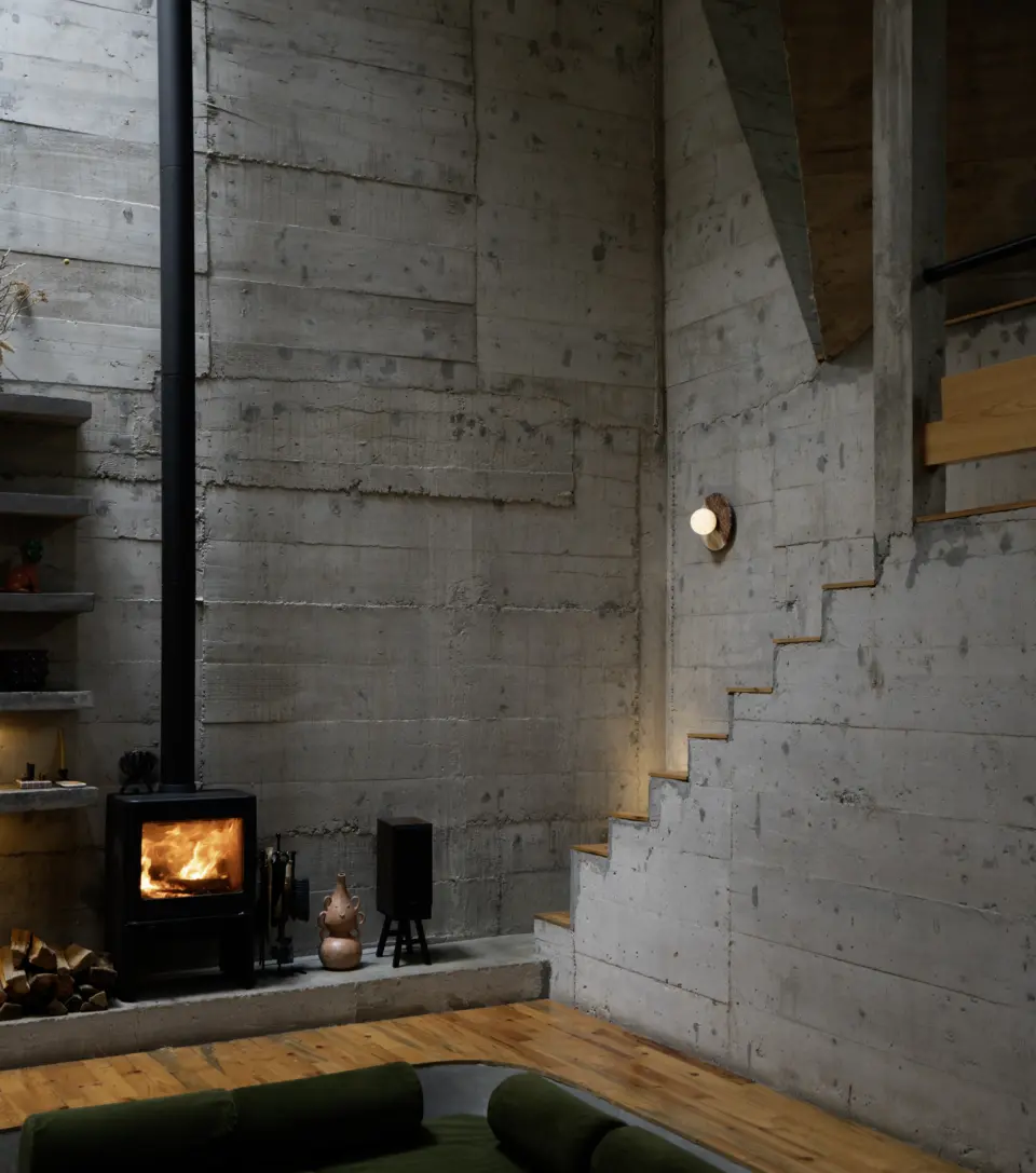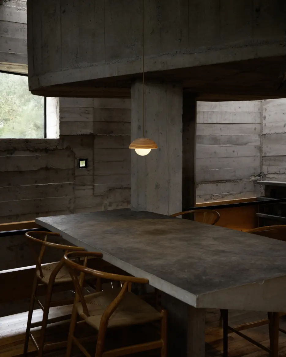 We fell in love at first sight with this magnificent Brutalist-style home. Its calm, contemplative atmosphere, where materials are the main focus. It retains its rough materials but adds a touch of warmth, natural light and a few organic accents to balance out the roughness.