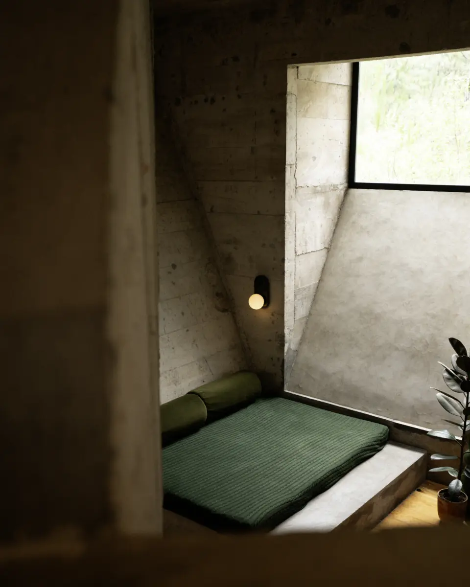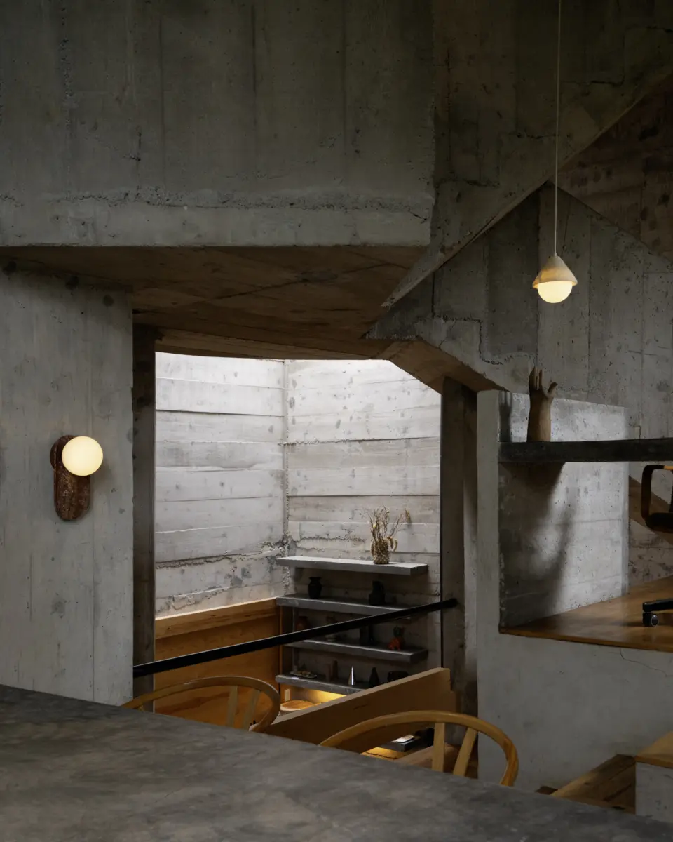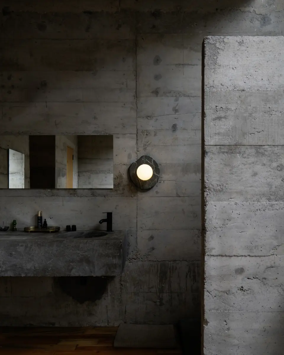 We fell in love at first sight with this magnificent Brutalist-style home. Its calm, contemplative atmosphere, where materials are the main focus. It retains its rough materials but adds a touch of warmth, natural light and a few organic accents to balance out the roughness.