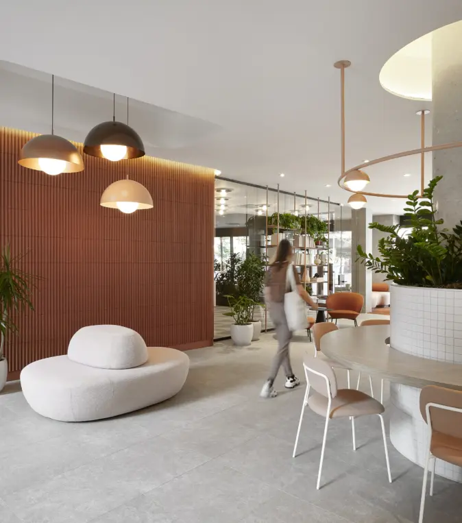 Custom lighting has been designed to create a warm and welcoming atmosphere, both refreshing and soothing.