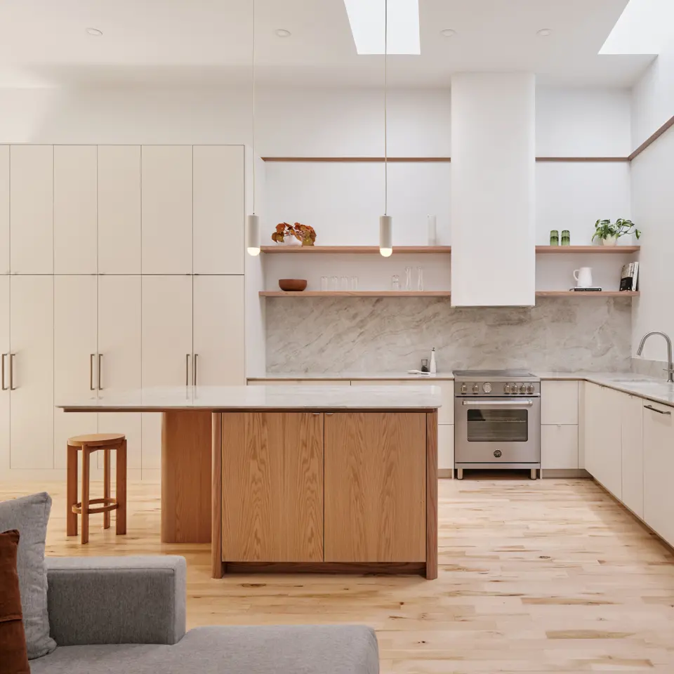 Designed by L. McComber in Montreal, the Shoebox Project transforms a typical 1950s house into a bright triplex. Combining preservation and modernity, the extension optimizes space and natural light while respecting the identity of the original building.