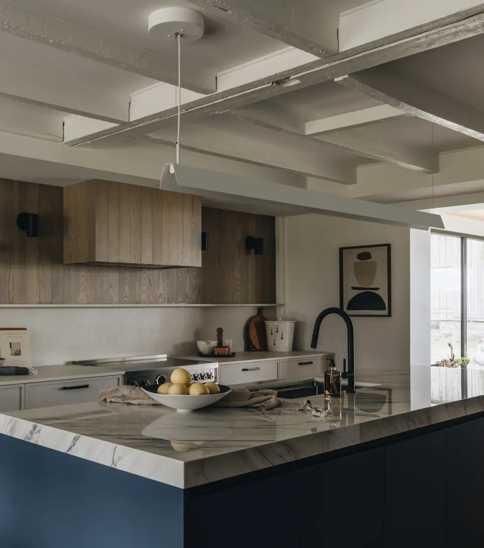 Located in Bolton-Ouest, the Brill Residence, renovated by FJORD intérieurs, seamlessly blends historical heritage with modern design. In 2024, the kitchen was completely transformed, featuring high-quality materials and contemporary touches. Our lighting adds elegance and warmth, enhancing the harmony of the space.