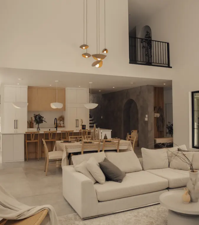 The Samson-Benoit Residence embodies a perfect harmony between contemporary design and timeless warmth. The bright living spaces are enhanced by clean, organic lines, featuring our Coquelicot lighting fixtures, creating an elegant and welcoming ambiance. Every detail is thoughtfully designed to reflect modern aesthetics while ensuring optimal comfort.