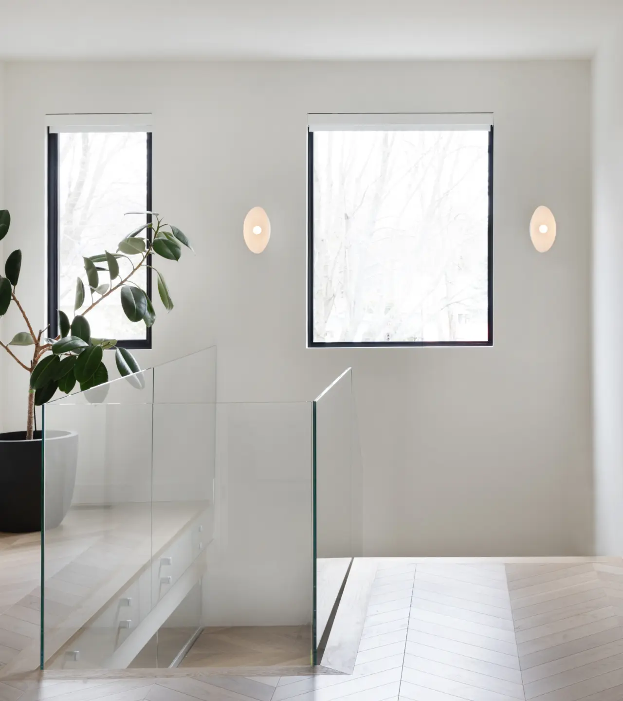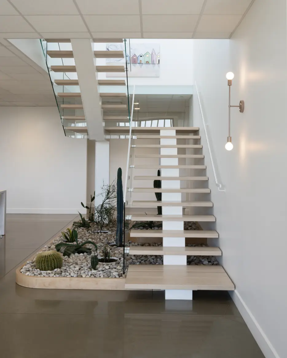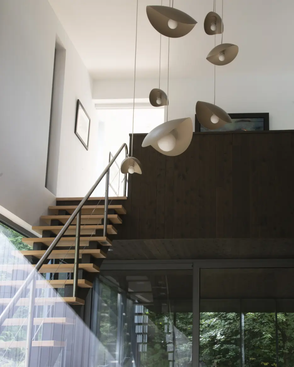 Lighting in stairways provides illumination that enhances safety while highlighting the architecture.