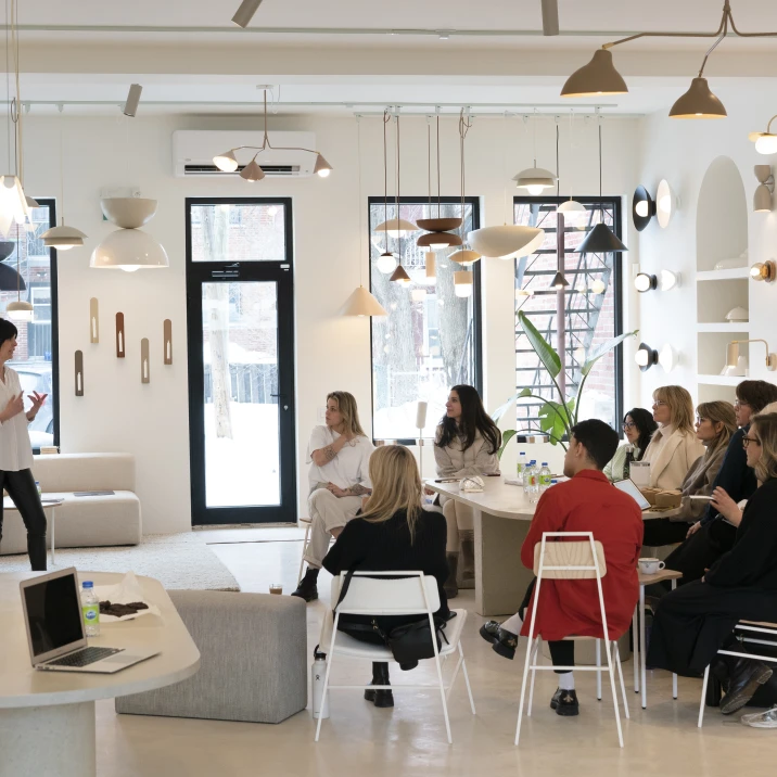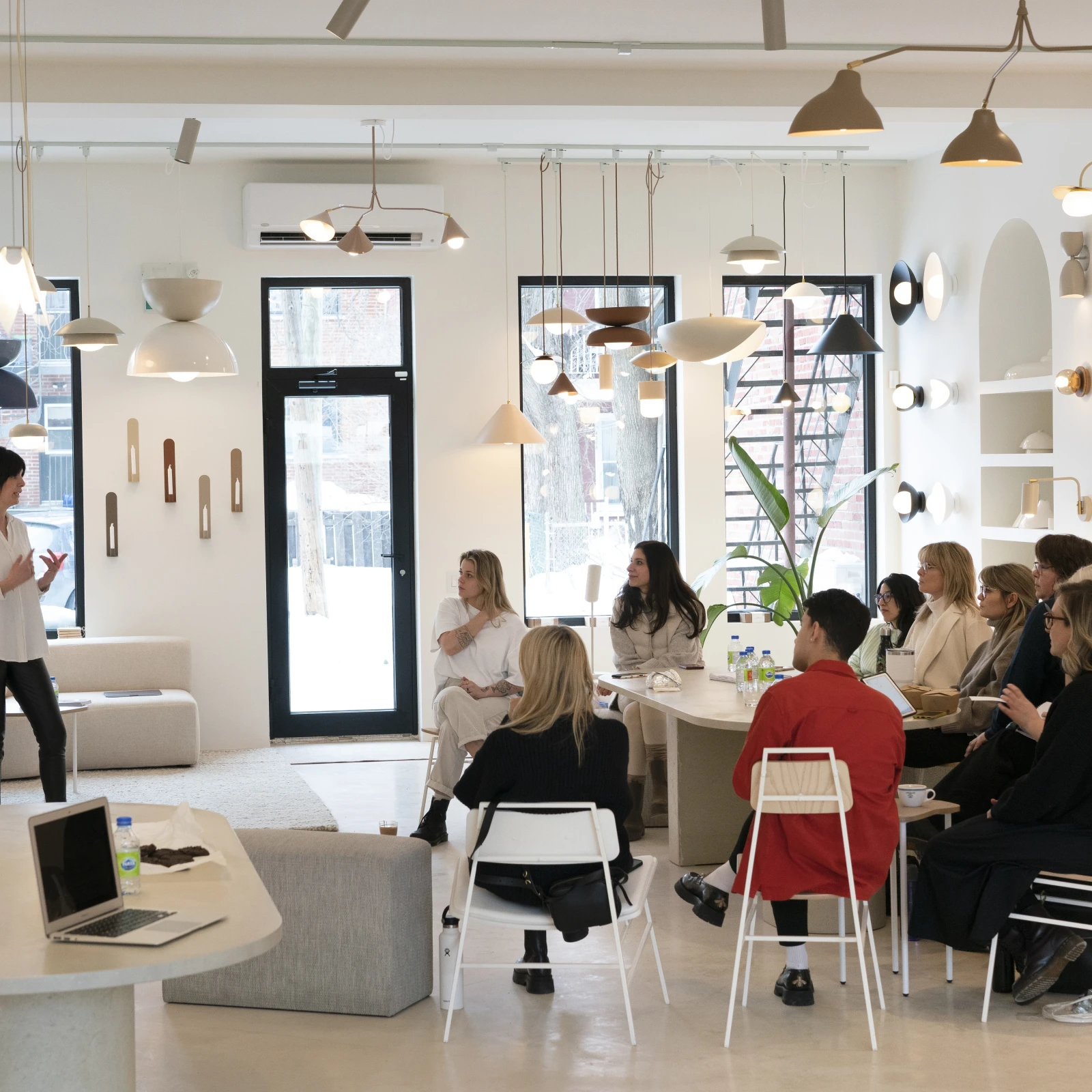 Book a product knowledge training session at our showroom, your office or virtually. It will be our pleasure to welcome you and show you the endless possibilities at Luminaire Authentik, all accompanied by a coffee or a glass of wine.