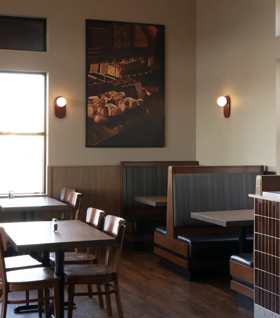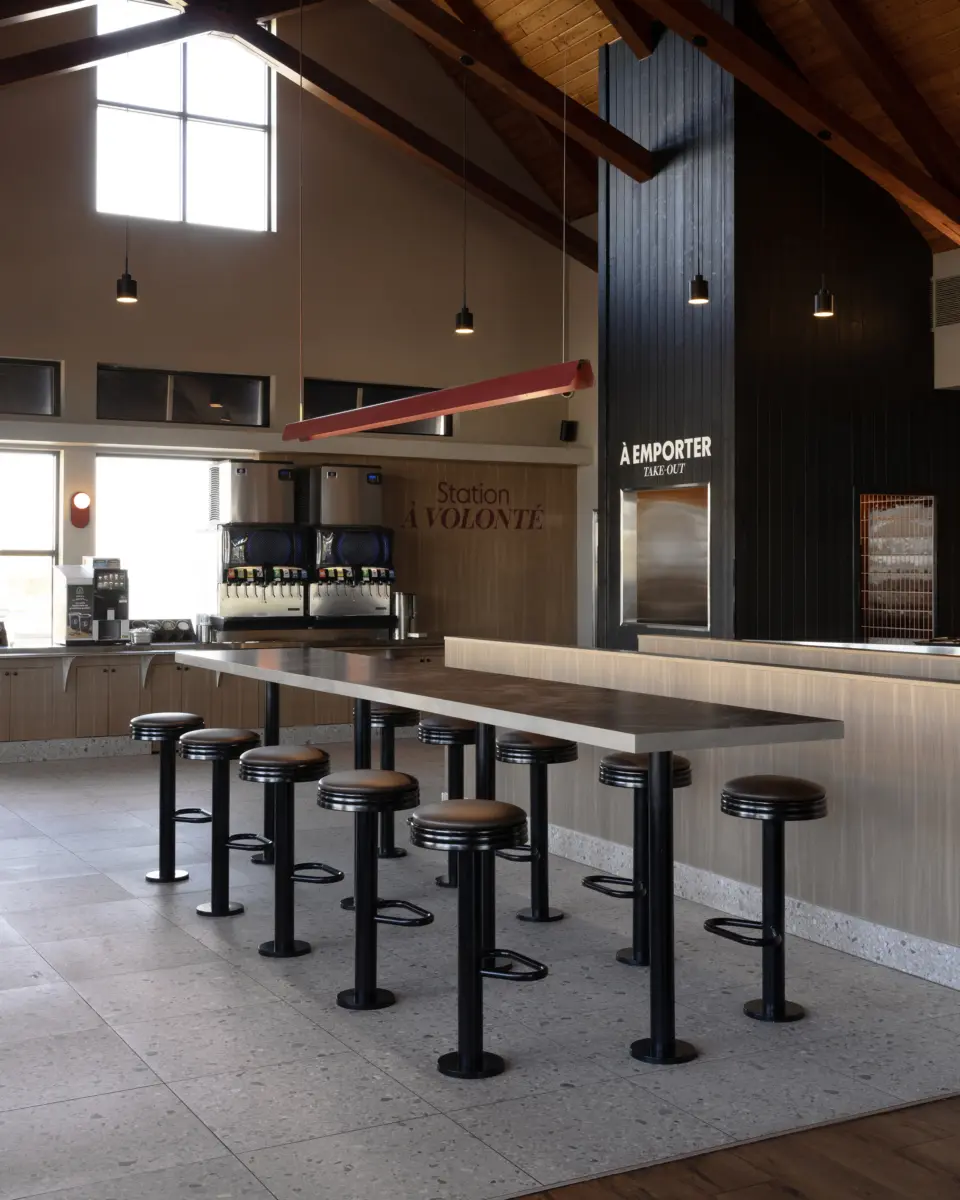The St-Hubert restaurant stands out as a gathering place that highlights the warm identity of Quebec through a lively, textured, and colorful interior design.